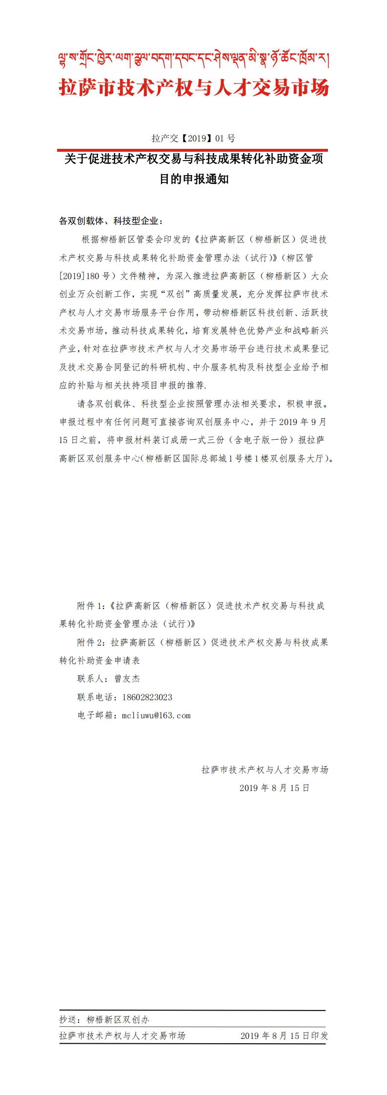 关于促进技术产权交易与科技成果转化补助资金项目的申报通知