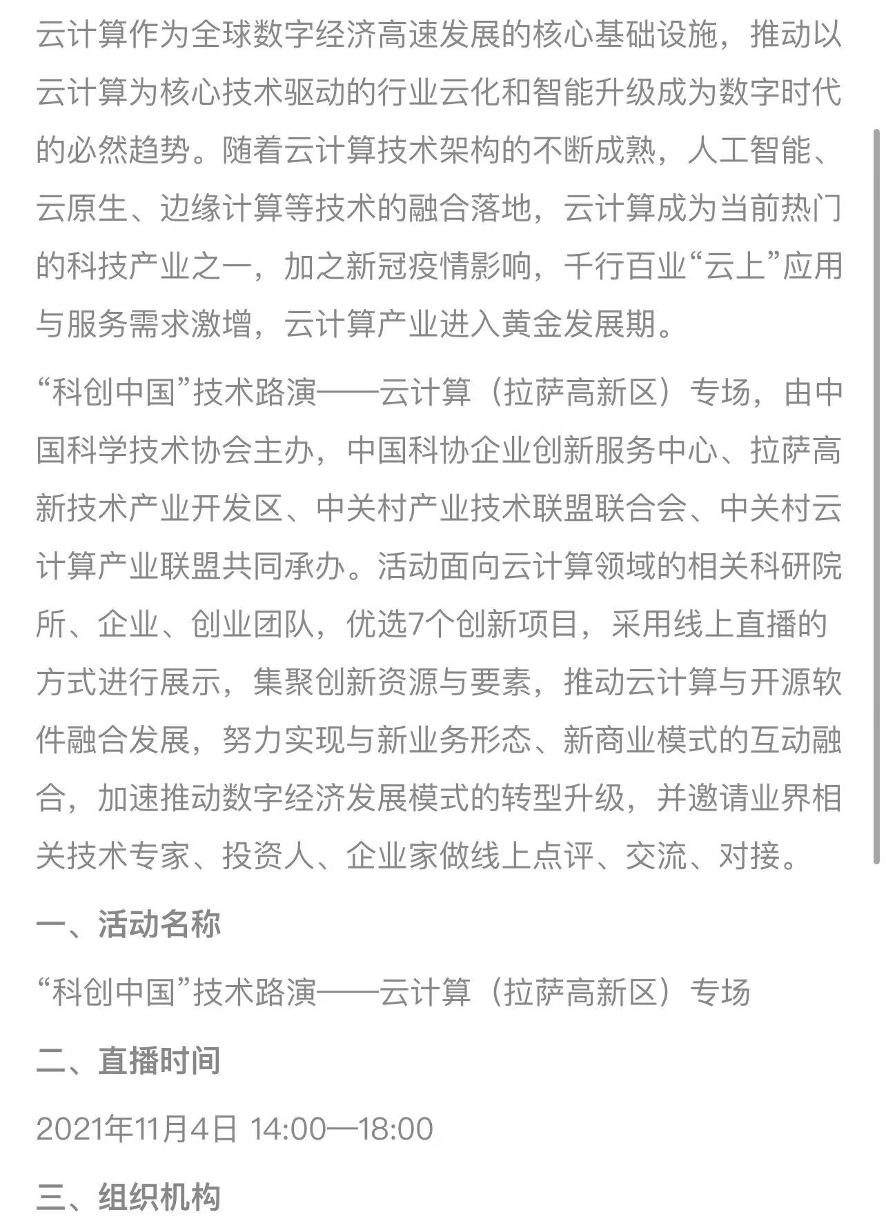 “科创中国”技术路演-云计算(拉萨高新区)专场